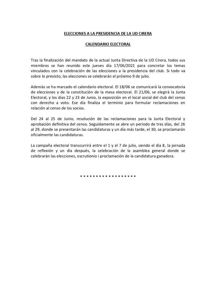 Elecciones a la presidencia de la UD Cirera